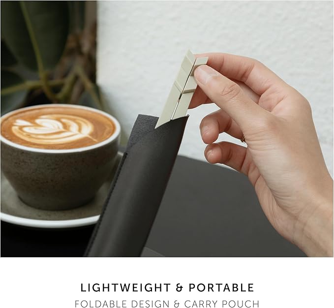 - EFFORTLESSLY PORTABLE: Ultra-thin at 0.6cm and lightweight at 72g, it folds flat to carry with you wherever your devices go. Comes with a carry pouch to easily slip into your bag without scratching.