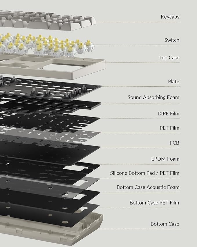 - South-Facing RGB - The south-facing RGB lighting shines more clearly from the typist’s angle and avoids interference when using Cherry-profile keycaps. Paired with premium non-shine-through PBT keycaps for a refined look.