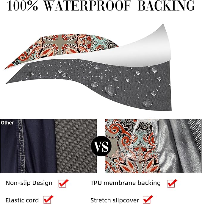 - [Premium Stretch Fabric]: Made of 92% polyester + 8% spandex, these waterproof outdoor cushion covers offer superior elasticity (fits 20"-27" cushions) while resisting fading and weather damage.