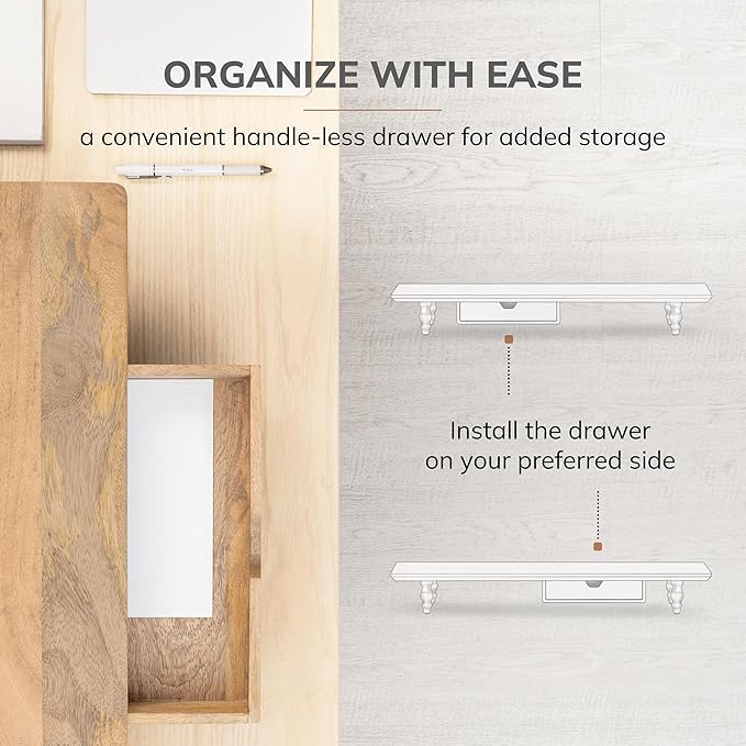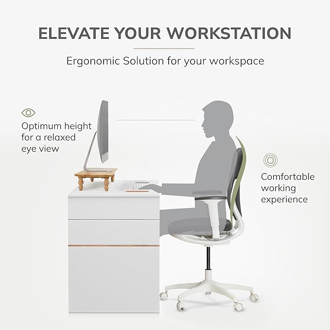 - Premium Wood Finish: Our wood monitor stand, designed for elegance, complements any decor. As a desk monitor riser, it combines functionality with aesthetic appeal, seamlessly integrating into your workspace as a desktop monitor stand.