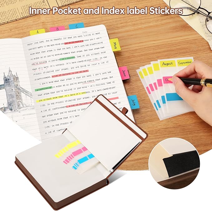 - Humanized Design: The journaling notebooks come with built-in page numbers and dividers to make it easy to quickly find what's important; the elastic closure and pen holder loop make it easy to start writing at any time; and the pocket on the back can be used to organize sticky notes, business cards, and other small items, making it practical and easy to use