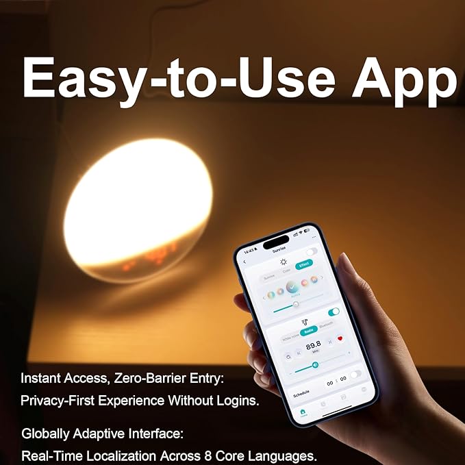 - Smart Dawn Simulation Wake-Up: Experience natural sunrise with 0-30min brightness gradient and 7 nature sounds (birdsong/ocean/forest) - For light sleepers and kids' circadian rhythm alignment.
