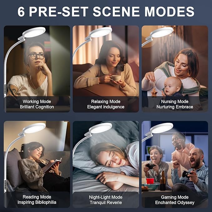 - 5 BRIGHTNESS & ADJUSTABLE: With 5 adjustable brightness levels + 5 color temperatures for personalized natural light exposure, cool white (6000K) for focus, warm white (3000K) for relaxation, and natural daylight (4000K) for office meetings or crafts. Designed to combat seasonal blues, Soothing eye strain, improve sleep and improve mental clarity