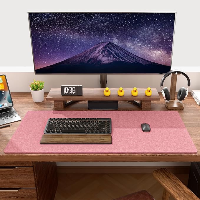 Auhoahsil Felt Desk Mat, Minimalist Large Mouse Pad XXL 35.5 x 15.7 in, Desk Matt for Desktop, Keyboard, Laptop, Computer, Office, Work from Home, Gaming, Pink
