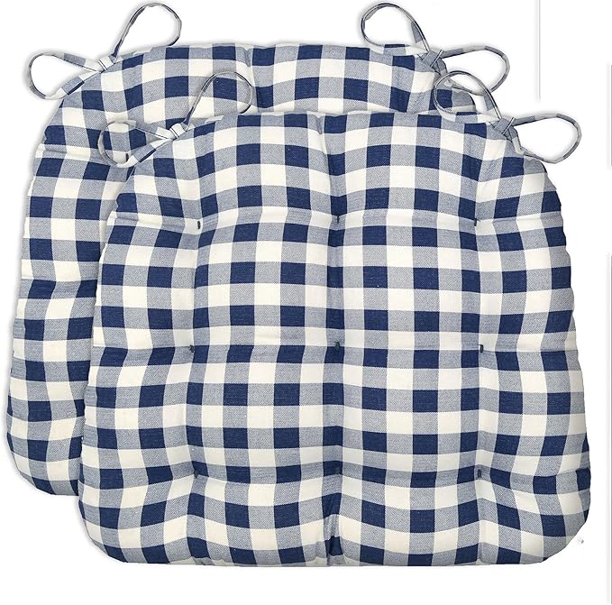- Machine Washable Indoor Chair Cushions: These kitchen chair pads are machine washable for easy cleaning and maintenance; kitchen seat cushions are reversible to the same Classic Check Navy Blue Design