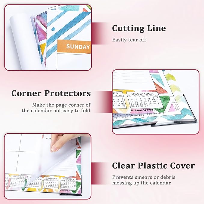 - Durable Use: Plastic cover can protect the calendar from dust and water pollution;the corner protectors can make the page corner of the calendar not easy to fold