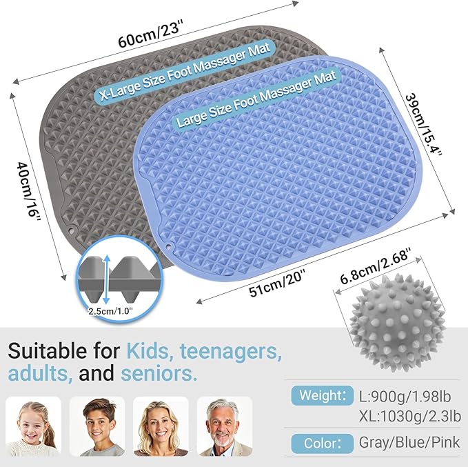 Upgrade Silicone Foot Massage Mat, Large Reflexology Mat for Feet Relaxation, Portable Foot Acupressure Mat with Dual-Side Usage, Foldable Standing Desk Mat for Pain, Fatigue Relief(Gray-XL)