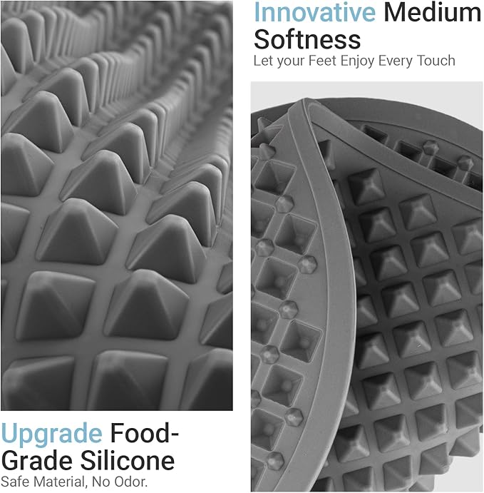 - 【Upgrade Premium Material】GEENOA foot reflexology mat is one-piece designed and made of food-grade silicone. It’s super-durable, BPA-Free, odor-free and non-toxic, compared with those made of plastic and wood. Medium softness silicone material provides gentle yet effective massage for your feet, suitable for all groups of people, including kids, teenagers, pregnant, and seniors.