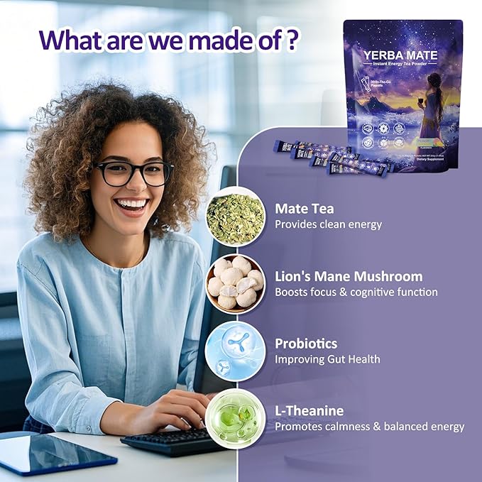- Enhances Concentration: Our Yerba Mate Tea Powder contains Lion's Mane mushrooms, Lion's Mane Mushroom is known for cognitive enhancement and contains many beneficial bioactive compounds that aid in cell repair and growth and support immune function