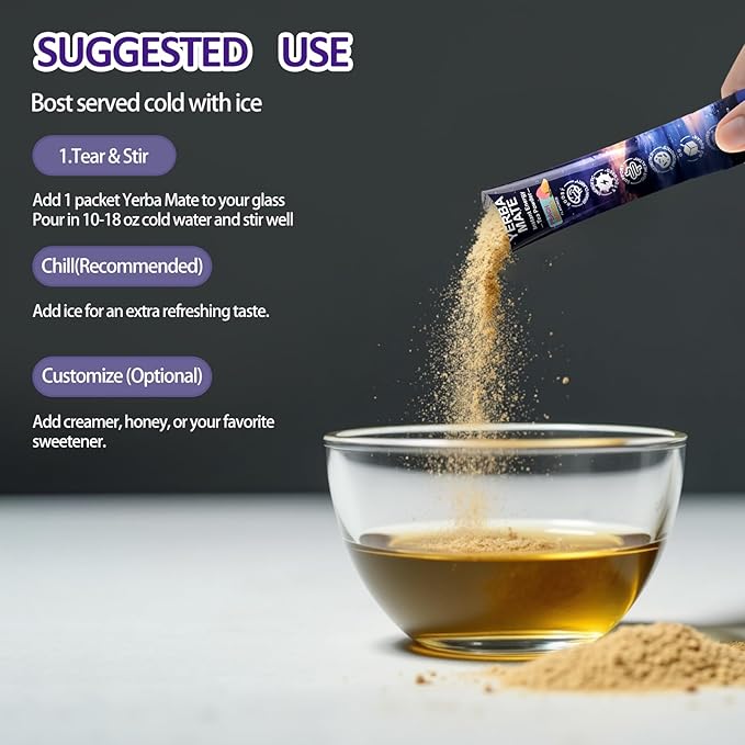 - Individual Packaging: Our Yerba Mate Tea Powder comes with 30 individually wrapped sachets, making it easy to take with you on the go, simply add the powdered sachets to water, shake or stir well, and add ice (if you want a cold drink)