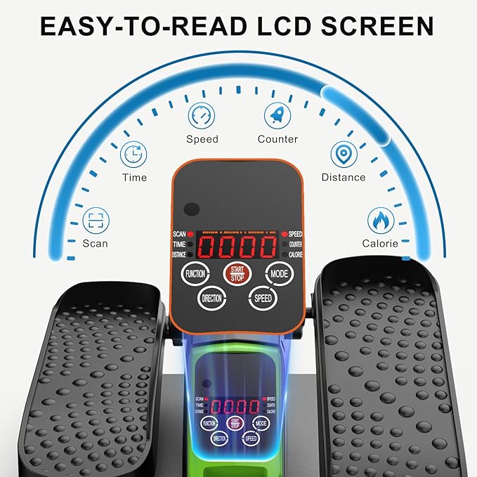 - Quiet Operation & LCD Display: This machine under desk ellpitical comes with extra non-slip mat and mute stickers for wheel to prevent it from shifting during pedaling and reduce working sound to below 15 DB. Built-in handle makes it easy to move anywhere. Could easily tract number of laps/time/speed/distance/calories burned on display