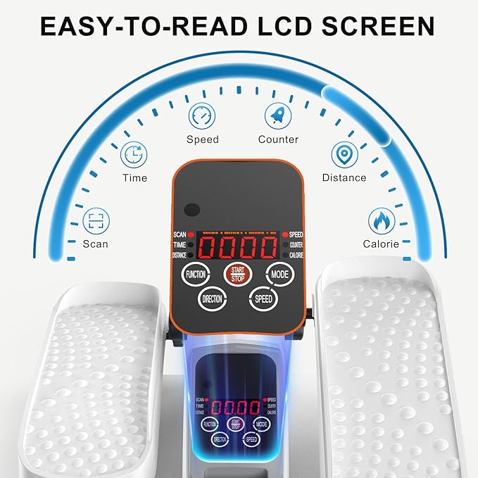 - Quiet Operation & LCD Display: This machine under desk ellpitical comes with extra non-slip mat and mute stickers for wheel to prevent it from shifting during pedaling and reduce working sound to below 15 DB. Built-in handle makes it easy to move anywhere. Could easily tract number of laps/time/speed/distance/calories burned on display