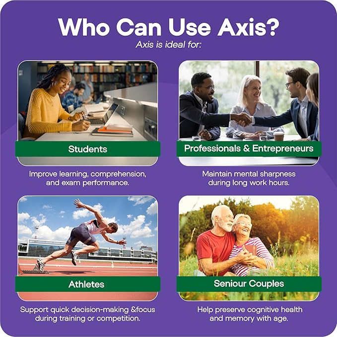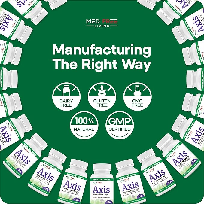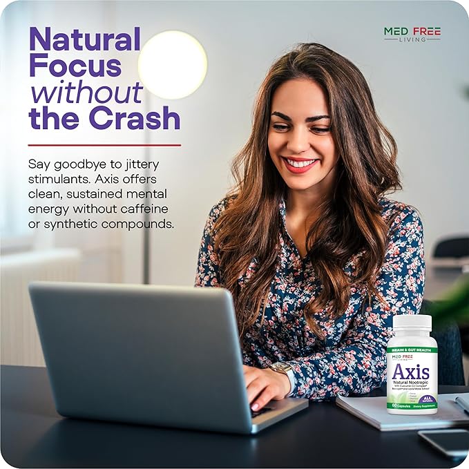 Axis Natural Brain Supplement with Curcumin C3 Complex, Bacopin, and Lion's Mane Extract - Brain & Gut Health Support, Focus, Energy, Stress Relief - 60 Capsules, All-Natural, Med Free Living (1)