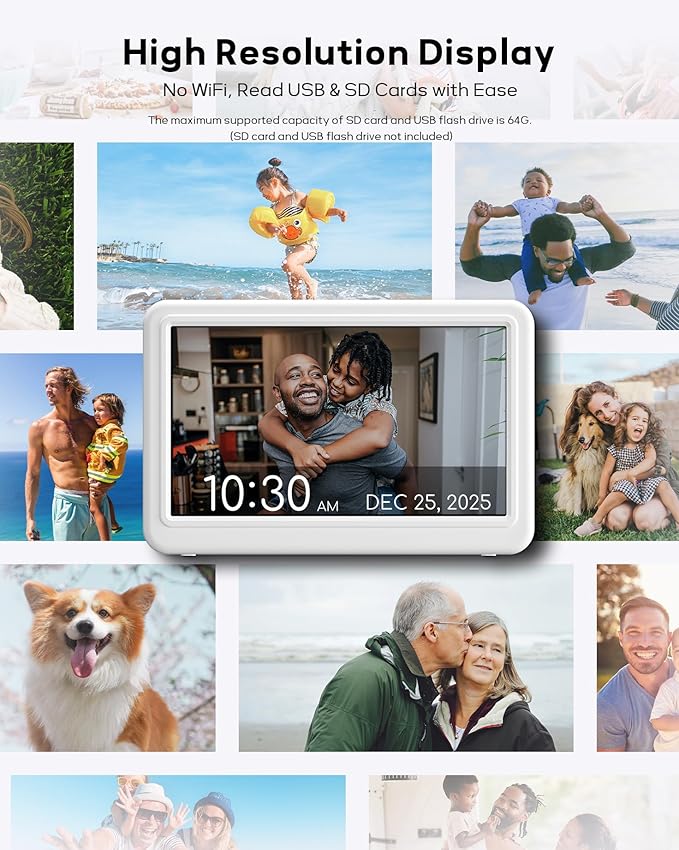 - ๐๐ฎ๐ข๐ฅ๐ญ-๐๐ง ๐๐ข๐ ๐ข๐ญ๐๐ฅ ๐๐ข๐๐ญ๐ฎ๐ซ๐ ๐ ๐ซ๐๐ฆ๐: It is not only a digital wall clock but also a digital photo frame. Just inset the USB flash drive into the slot on the back of the clock and it can play photos, allowing you to better enjoy the memory times (SD card and USB type: SD, SDHC, SDXC, USB2.0, support for maximum capacity of 64G)