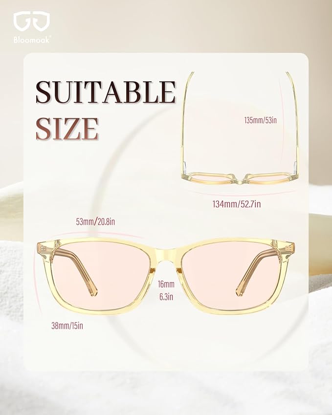 Bloomoak Rose Migraine Glasses, FL- Flex Light Sensitivity Relief Glasses for Fluorescent LED Glare,Photophobia, Eye Strain