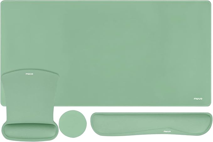 MOSISO Keyboard Mouse Pad Set, Large Gaming Mousepad&Keyboard Wrist Rest&Mouse Wrist Rest&Coaster, Ergonomic Non-Slip Mousepad&Easy Typing Cushion with Memory Foam for Home Office, Emerald Green