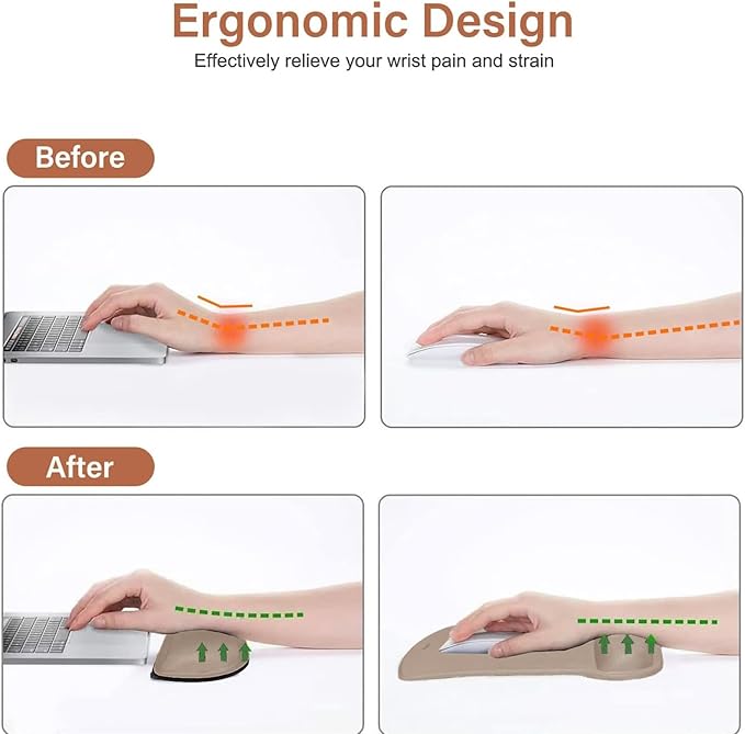 - Ergonomically designed with breathable/durable neoprene cloth and raised memory foam. Efficient for easy typing & pain relief. Offers soft support to relieve pressure and pain of your wrist, keep your wrist in a natural and comfortable state.