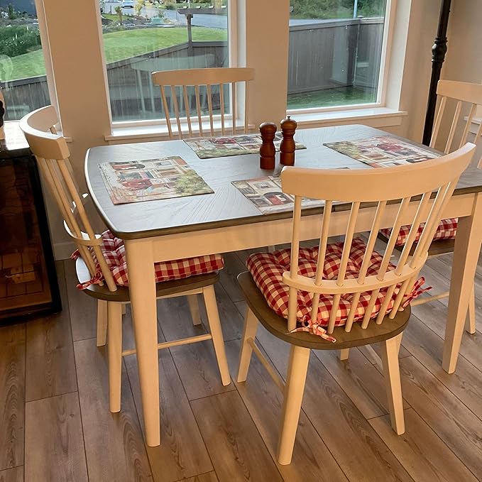 - Machine Washable Indoor Chair Cushions: These kitchen chair pads are machine washable for easy cleaning and maintenance; kitchen seat cushions are reversible to the same Classic Check Red Design