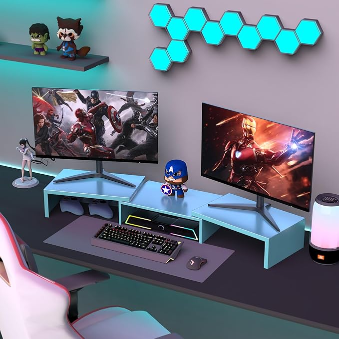 Dual Monitor Stand for Desk, Metal Computer Stand, Desk Shelf Riser,Desktop Organizer for Home and Office Use (Blue)