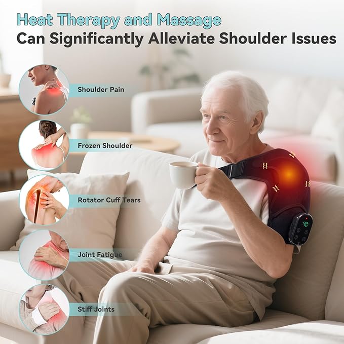 - Cordless Portability & Extended 110 Minutes Runtime: Our shoulder reliever features a 5000mAh rechargeable battery, offers up to 110 minutes of continuous heat and vibration therapy. Ergonomic wrap design for unrestricted movement at home, work, or travel. No cords, no limits.