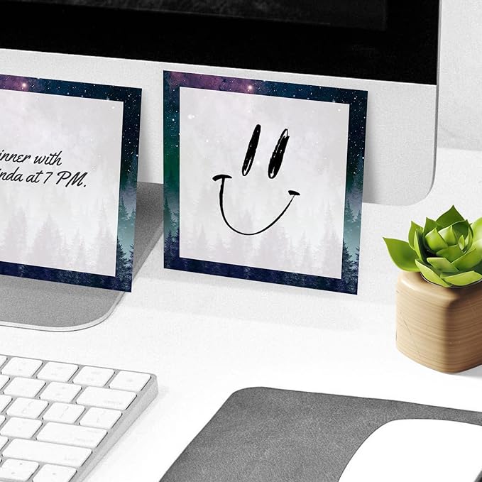 Sticky Notes, 2 Pads, 3x3 inches, Cute Colorful Fun Self-Stick Note Pads, Easy Post, Strong Adhesive Notepad Galaxy Forest Sky