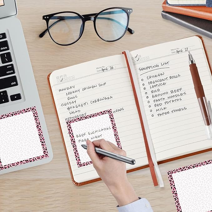 Sticky Notes, 2 Pads, 3x3 inches, Cute Colorful Fun Self-Stick Note Pads, Easy Post, Strong Adhesive Notepad Pink Leopard