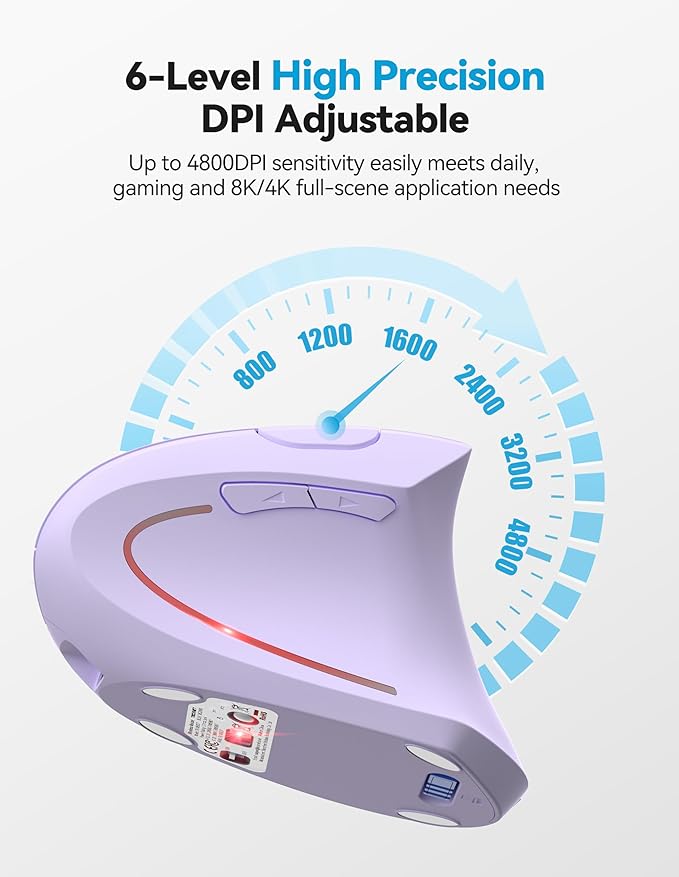 - PRECISE CONTROL: The bluetooth mouse uses 4800/3200/2400/1600/1200/800 DPI resolution optical tracking technology to provide higher sensitivity than standard optical mice, allowing smooth and precise tracking on a variety of surfaces
