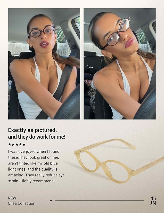 TIJN Olisa Blue Light Blocking Glasses for Women Men,Oval Glasses Frame Bluelight Glasses for Gaming/Computer/Screen
