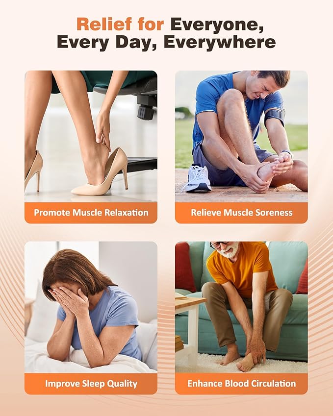 - 【Professional Foot Massage】KNQZE foot massager with heat simulates professional techniques, providing targeted deep kneading and air squeezing to key areas of the feet. Combined with adjustable heat, it promotes relaxation for tired feet from standing, walking, or daily activities.