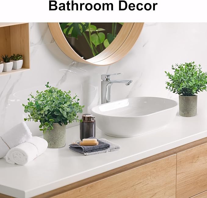 - Small Fake Plants - Safe and durable material, the eucalyptus leaves of fake plants are made of environmentally friendly plastic.Vivid colors and realistic leaves making these fake plants more life-like and look natural.