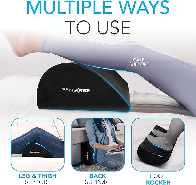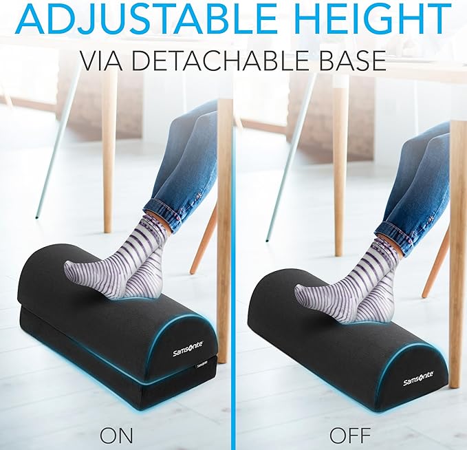 Samsonite Ergonomic Foot Rest, Adjustable Memory Foam Foot Stool for Under Desk at Work, Office Desk Accessories for Long Sessions and Comfort