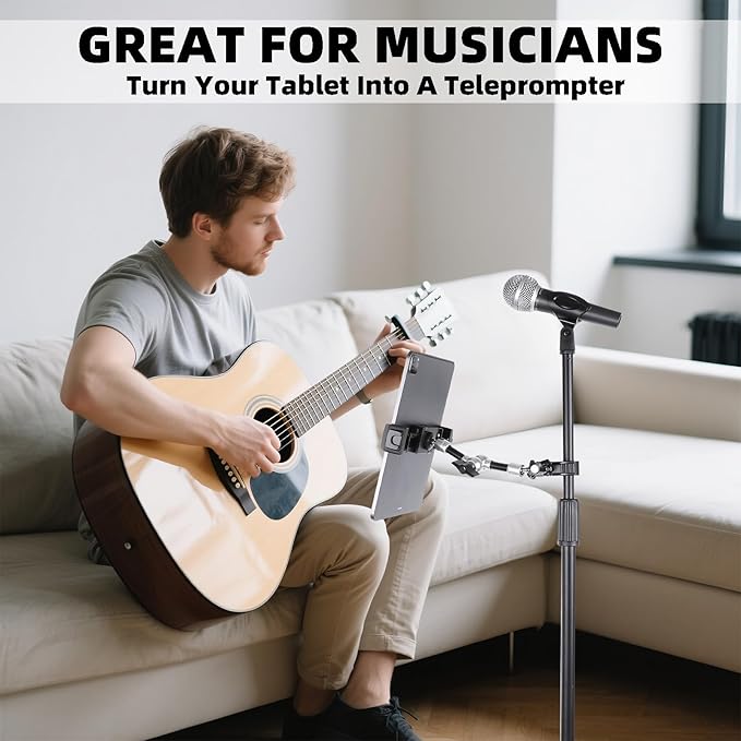 - Perfect for Mic Music Stands: Designed for musicians and performers, this tablet holder allows you to easily attach your tablet or phone to any microphone stand, boom arm, or music stand. Ideal for live performances, choir rehearsals, weddings, concerts, and meetings, it provides a secure and adjustable solution for viewing sheet music or lyrics hands-free.