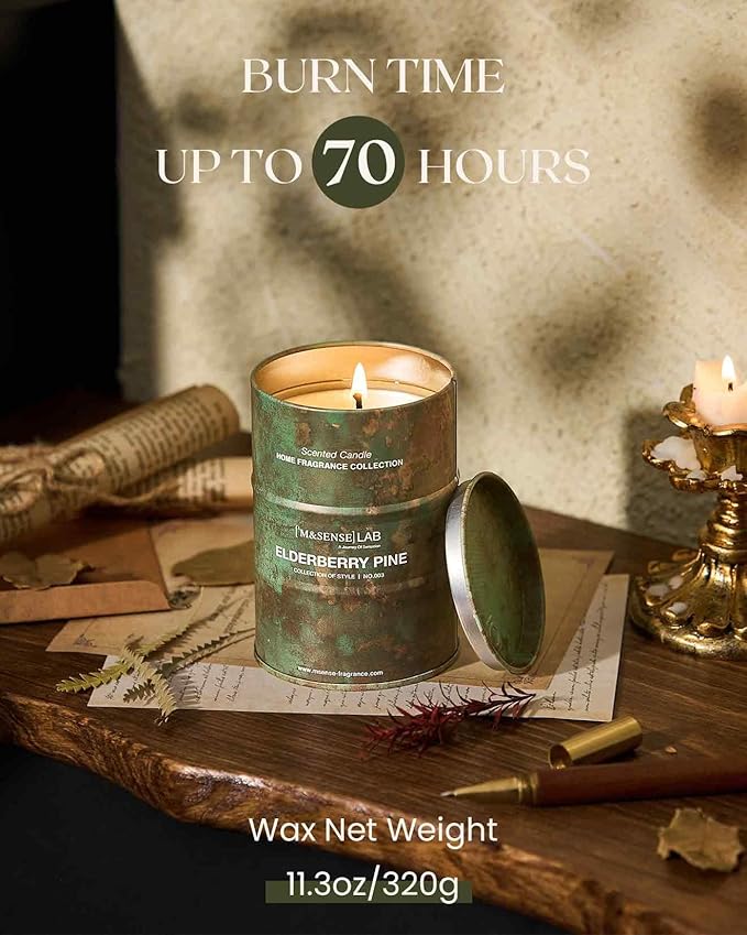 M&SENSE Elderberry Pine Scented Candles Natural Non Toxic, Aromatherapy Candle for Stress Relief Meditation Relaxing, Housewarming Gifts for Women Men, 11.3oz 70 Hour Long Burning