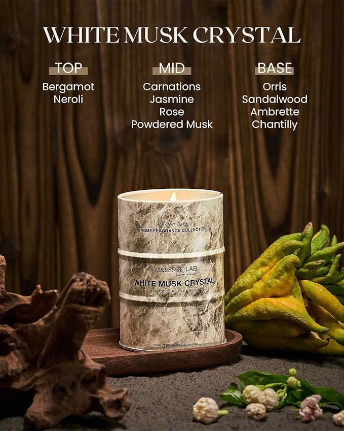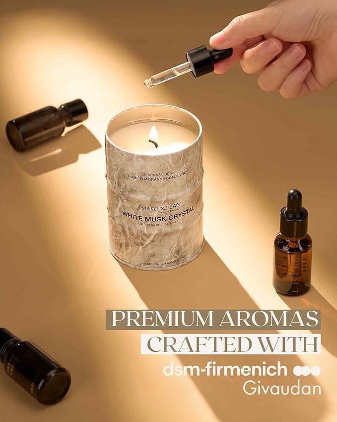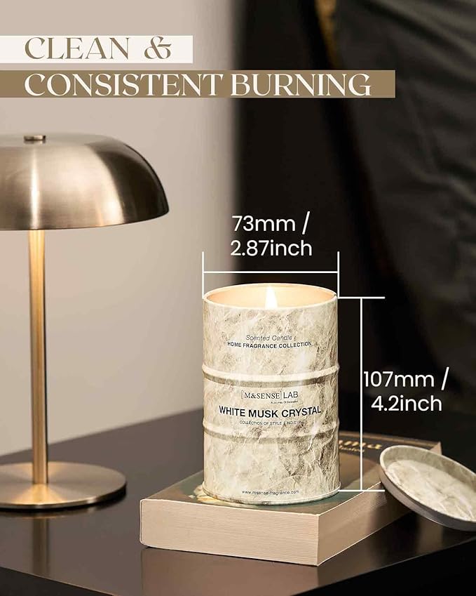 M&SENSE White Musk Scented Candles Natural Non Toxic, Aromatherapy Candle for Stress Relief Meditation Relaxing, Housewarming Gifts for Women Men, 11.3oz 70 Hour Long Burning