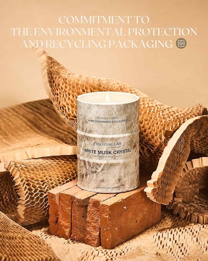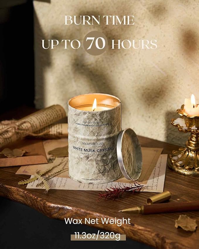- 💚 Sustainable Material - M&SENSE candles are all crafted with the finest and most natural ingredients. Using high-end vegetable wax and unbleached cotton wicks in a reusable and recyclable tin. Packaged in recycled honeycomb paper and cardboard box for a more sustainable future.