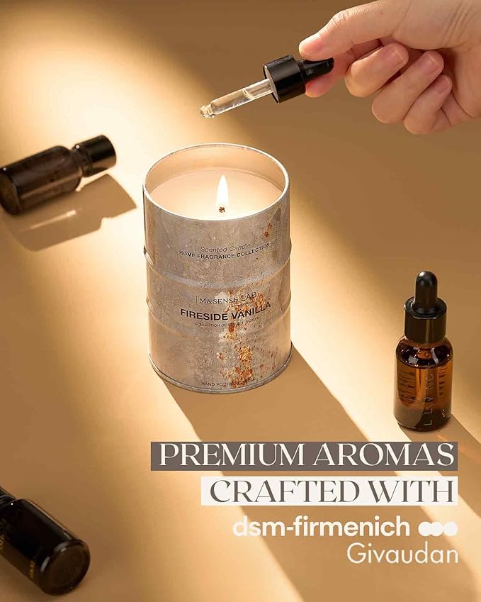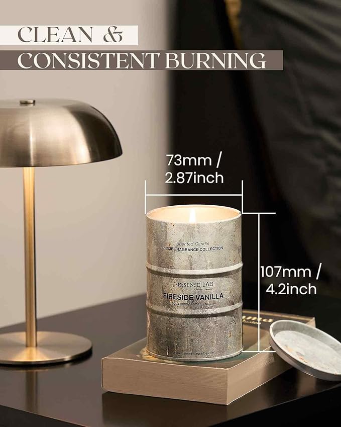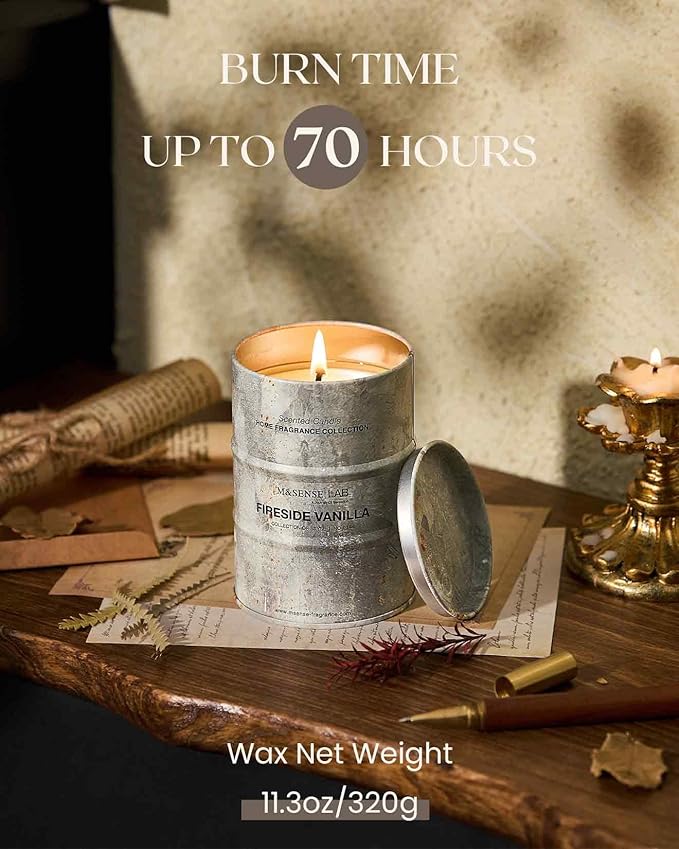 M&SENSE Fireside Vanilla Scented Candles Natural Non Toxic, Aromatherapy Candle for Stress Relief Meditation Relaxing, Housewarming Gifts for Women Men, 11.3oz 70 Hour Long Burning