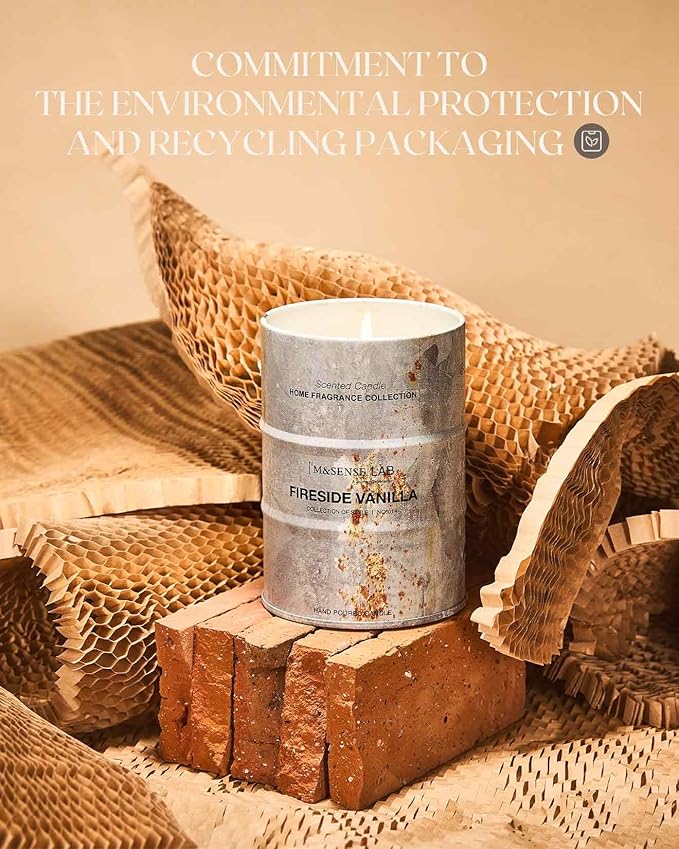- 💚 Sustainable Material - M&SENSE candles are all crafted with the finest and most natural ingredients. Using high-end vegetable wax and unbleached cotton wicks in a reusable and recyclable tin. Packaged in recycled honeycomb paper and cardboard box for a more sustainable future.