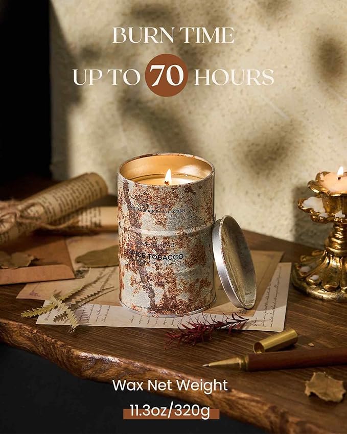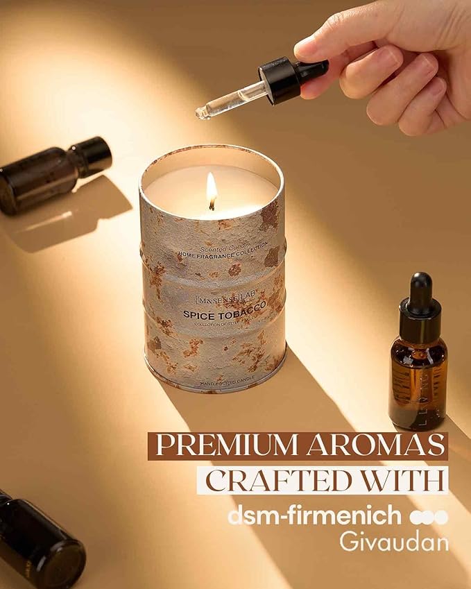 M&SENSE Spice Tobacco Scented Candles Natural Non Toxic, Aromatherapy Candle for Stress Relief Meditation Relaxing, Housewarming Gifts for Women Men, 11.3oz 70 Hour Long Burning