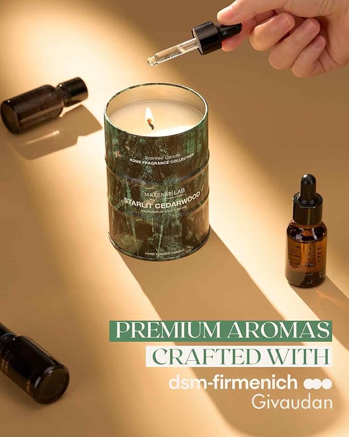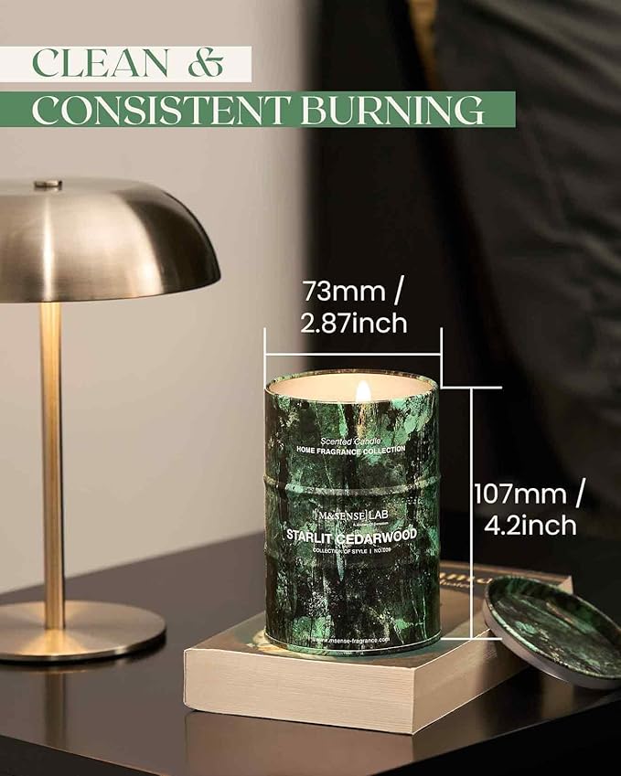 - 💚 Sustainable Material - M&SENSE candles are all crafted with the finest and most natural ingredients. Using high-end vegetable wax and unbleached cotton wicks in a reusable and recyclable tin. Packaged in recycled honeycomb paper and cardboard box for a more sustainable future.