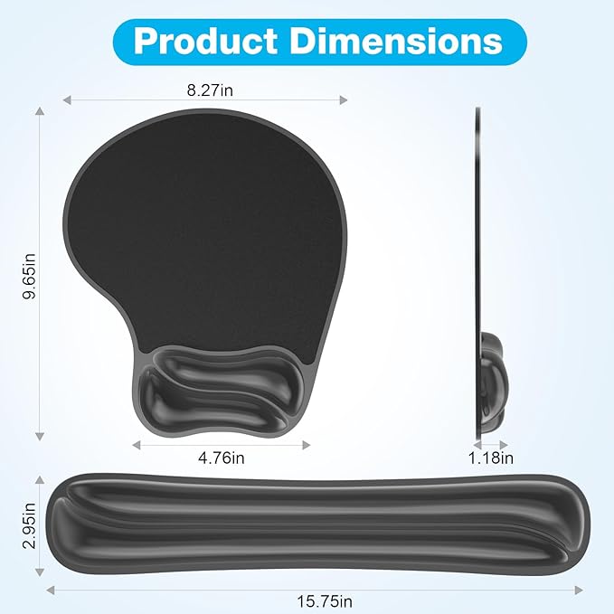 - Universal Size Keyboard and Mouse Pad:Designed to fit most setups, this set includes a keyboard wrist rest (15.75*2.95 in) and a mouse wrist rest (9.65*8.27 in). Compatible with 65%, 75%, and full-size keyboards, mechanical or otherwise.