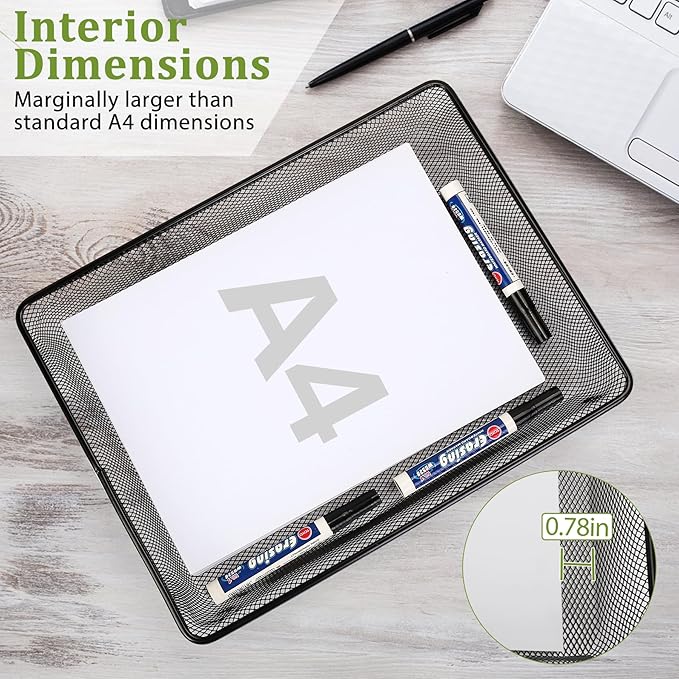 - Dimensions: The paper basket organizer is slightly larger than A4 paper, measuring 14.3" × 9.8" × 2" (h), and can hold approximately 500 sheets of A4 paper.