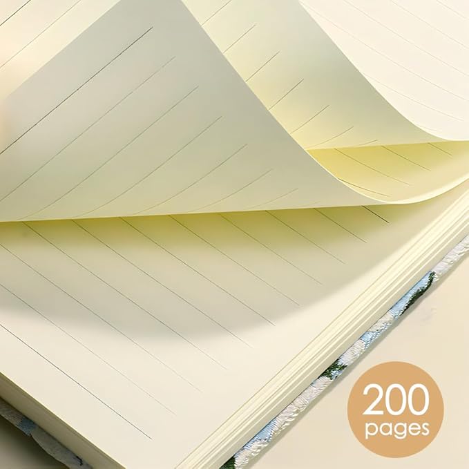 - 200 Lined Pages with Ribbon Bookmark: with 100 gsm high quality acid-free paper, wide ruled, 0.4 inch vertical spacing, provide structure and free space for your journal writing.