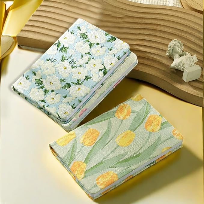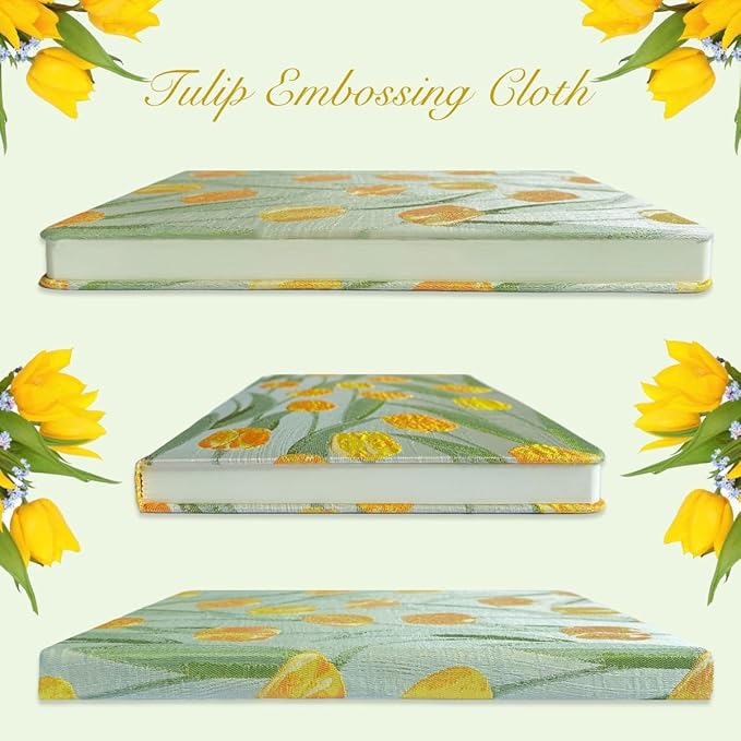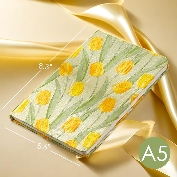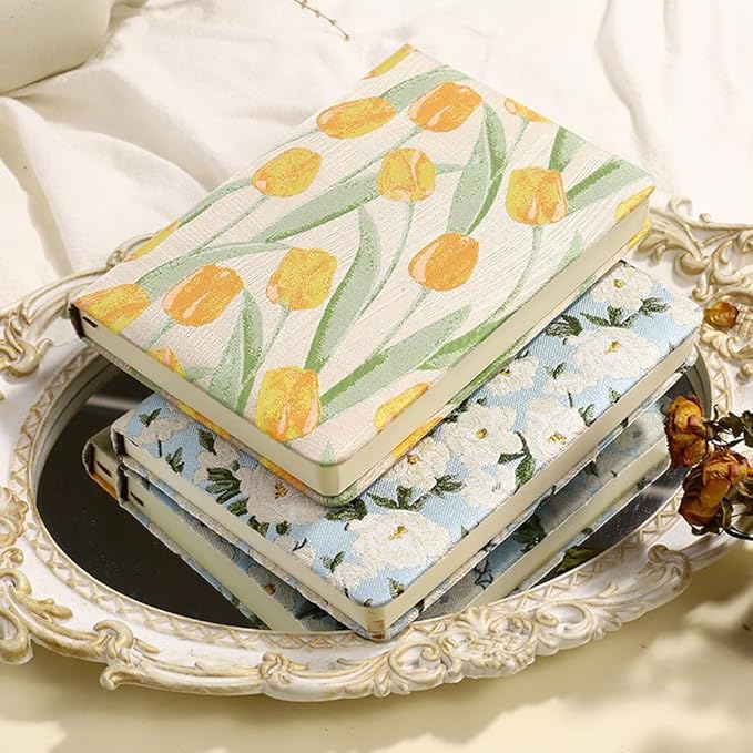 - Chic Fabric Cloth Cover: this floral notebook adorned with a luxurious fabric cloth cover featuring an enchanting tulips, this textile printing design exudes femininity and grace.