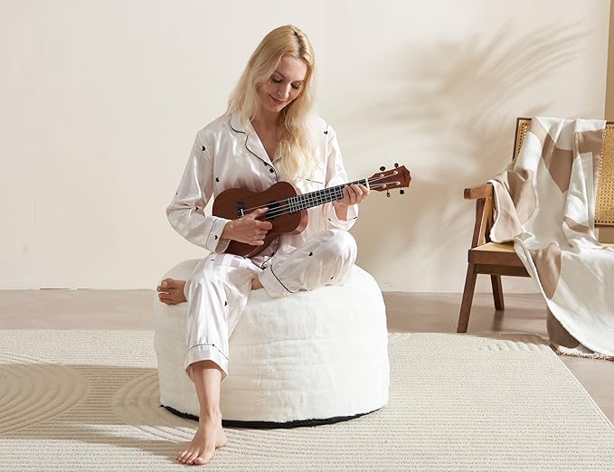 - The ottoman round foot stool ottoman is packed with foam filling and an ottoman cover. It’s easy to assemble: carefully cut open the filling bag with a knife after receiving, place the foam into the pouffe ottoman cover, and let the round stool expand for 48-72 hours. During this time, pat, shake, and knead the footrest ottoman to distribute the foam evenly. The bottom of the soft ottoman features a non-slip design and a hidden zipper, making it easy to remove the cover for cleaning.