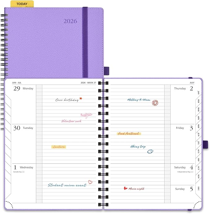 - 【User-Friendly Design for Effortless Daily Use】We built POPRUN 2026 planner for real, on-the-go life. Instantly find today's date with the "TODAY" ruler and coded monthly tabs. Never lose your place with dual bookmarks and tear-off corners. The elastic band keeps it closed, the pen loop holds your stylus, and a handy foldable pocket safely stores receipts or notes. It’s designed for flawless functionality.
