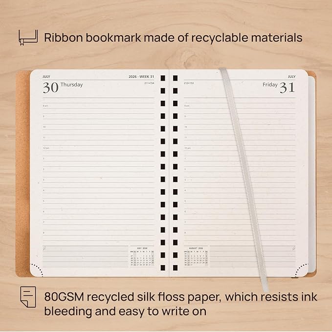 - 100% RECYCLED PLANNER:The cover and inner pages of this 2026 planner are made from renewable paper pulp imported from Italy. With a commitment to the protection of the earth, this planner helps to contribute to the sustainability of our environment.