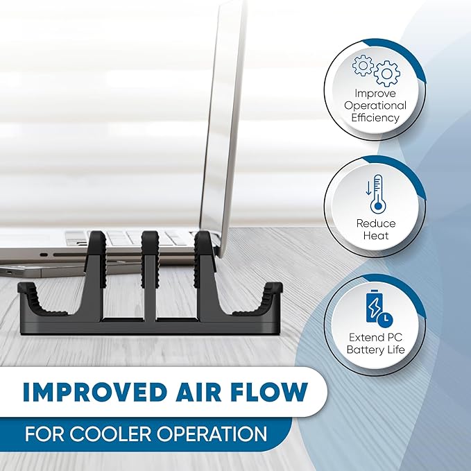 - Modern Design: Optimize your desk with an aluminum finish vertical laptop stand: cradle and hold your laptop or MacBooks, and mobile devices in style. Save valuable desk space, protect your device from spills, and provide better cooling with a vertical laptop holder.