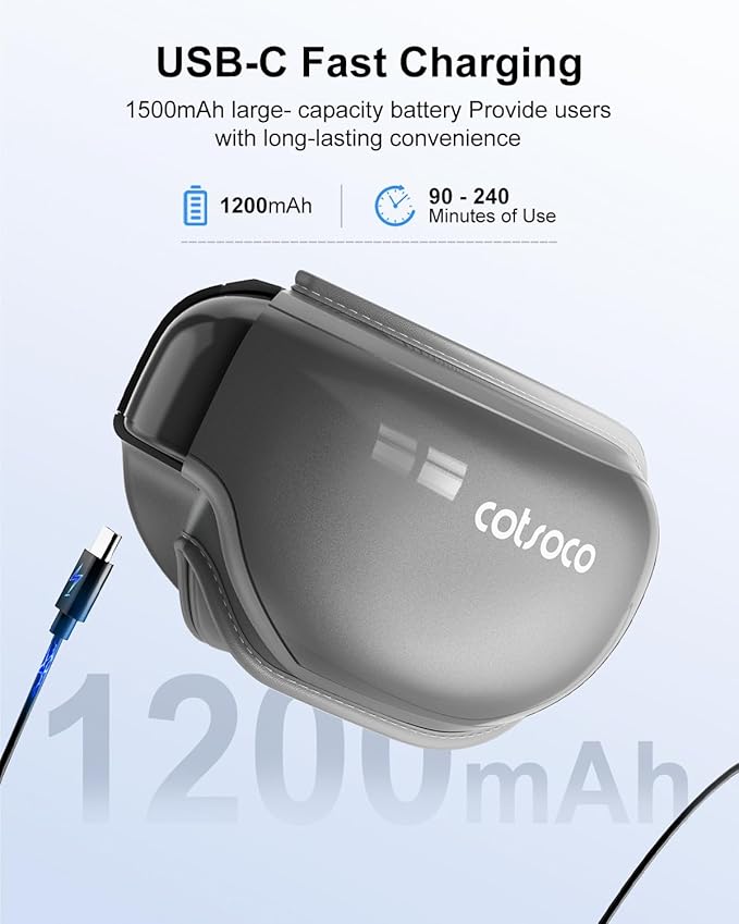 - Efficient Charging and Battery Life: With Type-C fast charging, the massager takes just 2-3 hours to fully charge, providing 2-5 hours of operation time based on usage intensity. An automatic 15-minute pause enhances safety