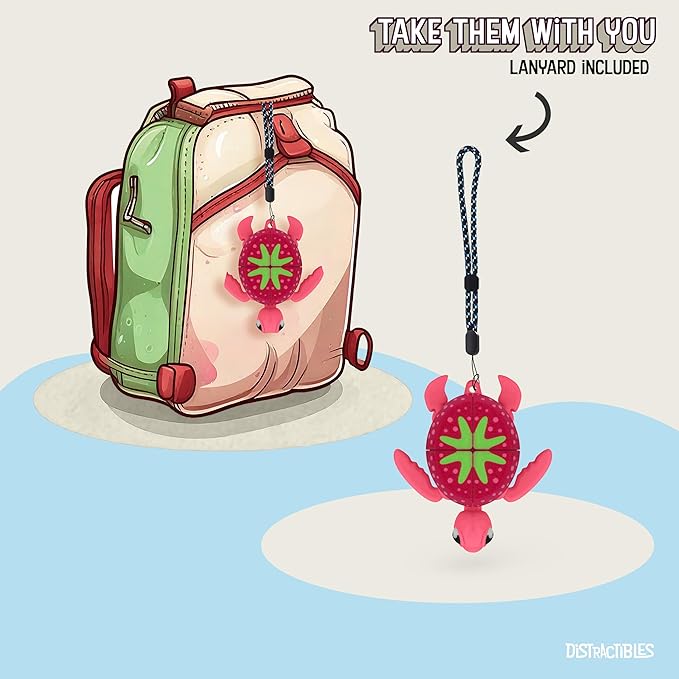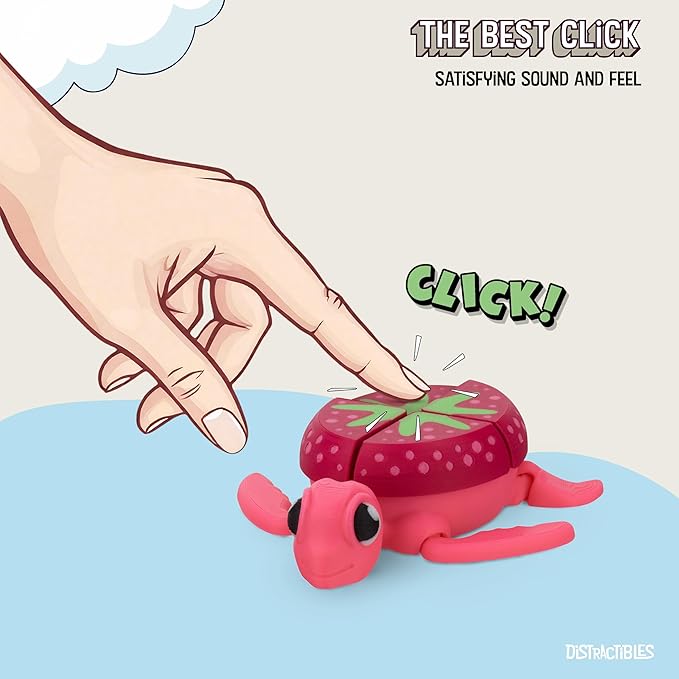 Distractible Turtle Fidget Toy, Articulating Design with Shell Clickers, Pocket-Sized & Durable, Sensory, Stress Relief, ADHD, Autism & Stim (Pink-Strawberry)