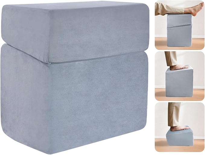 - [3-IN-1 HEIGHT ADJUSTMENT] Customize your footrest to 6.3" (16cm), 11.8" (30cm), or 16" (41cm) with a simple detachable design—perfect for any body type, chair height, or space. Stack layers for elevated leg support or remove tiers for a compact fit under desks, sofas, or gaming setups. Reduce leg fatigue and improve posture during work, relaxation, or long gaming sessions.